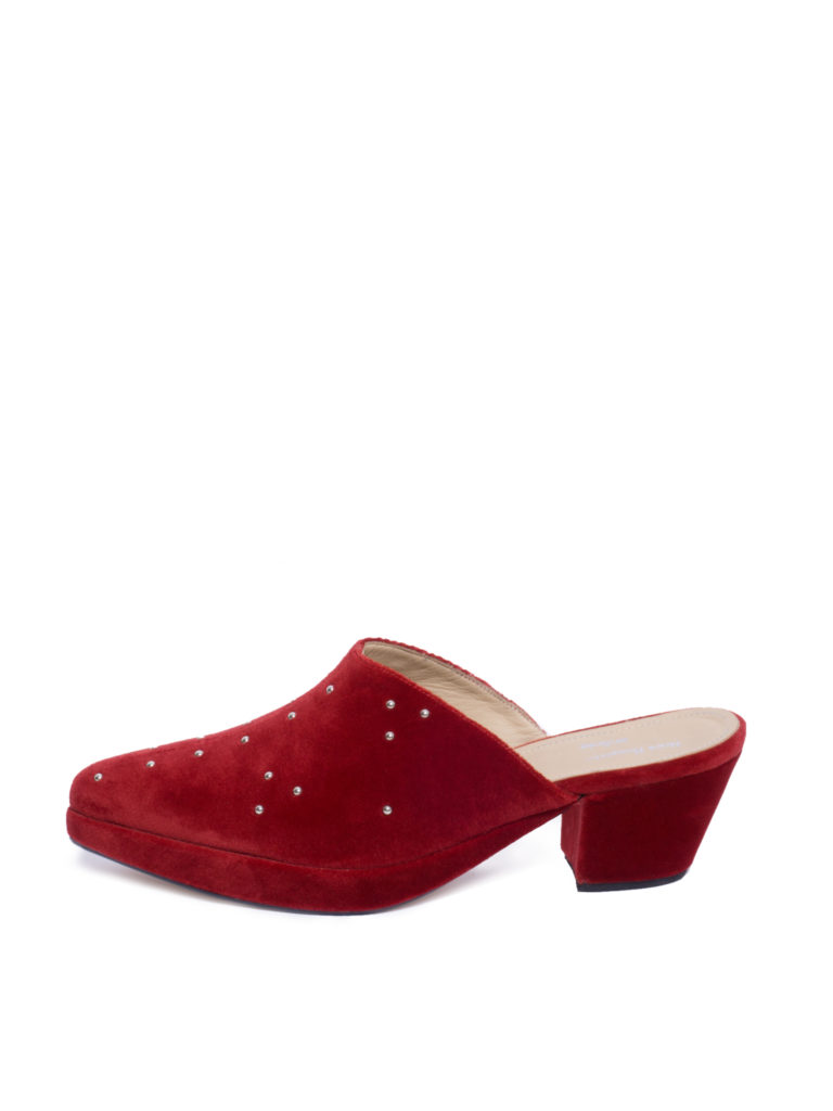 Rani Bageria fits perfectly into the philosophy. She is the self-named Jean D’Arc of shoe design, always with a strong, feminist agenda and design-language. Her capsule collection with enSoie has a touch of decadence. Three new colours meet a velvet shell – you can’t feel anything else but Bohemian in these shoes. The red slipper-design with its golden studs make you feel perfectly royal and have a punk attitude at the same time. What a contradiction! No wonder that the art scene has secretly been raving about this designer for years.